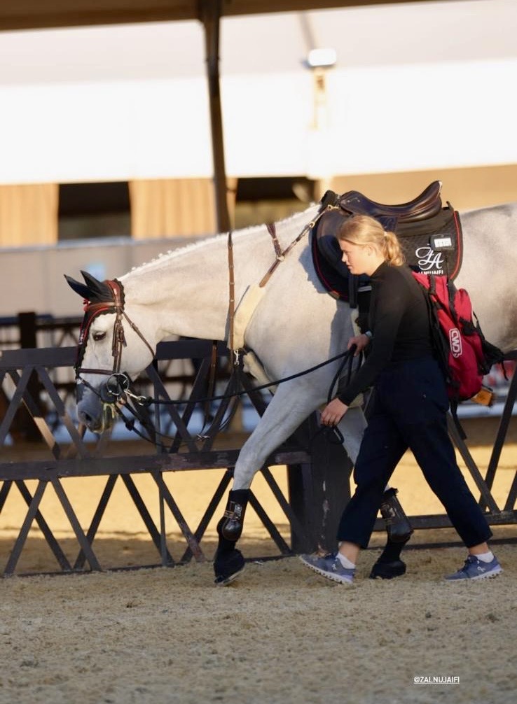 Working hours proved to be another major adjustment for Mase. In many Middle Eastern barns, particularly those run by local riders, the day’s work is split around the heat. Mornings begin super early and finish late morning, before a long break ensues. Work resumes late in the afternoon and often continues well into the night. “You finish stables at around 10 or 11 at night,” she said. “Sometimes even later.” Shows themselves can also run past midnight. “At one International Show, horses were warming up after two o’clock in the morning,” she said. “That was a four-star show.”