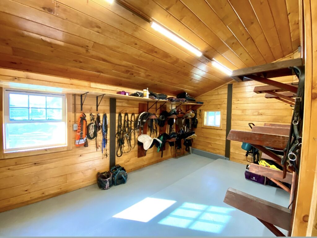 The shiplap enhanced the room’s aesthetics by brightening the space and climate control added to the comfort level. “If your tack room is dark and dingy, you don’t want to spend time in there,” said Cutting. “And a tack room should be not necessarily a social spot, but it should feel comfortable. I wanted it to be a space where people were like ‘Oh it’s nice in here. I can clean my tack in here and not feel like I’m in a shed’’. A place where you can cool off on a hot day or warm up for a moment in the cold.”