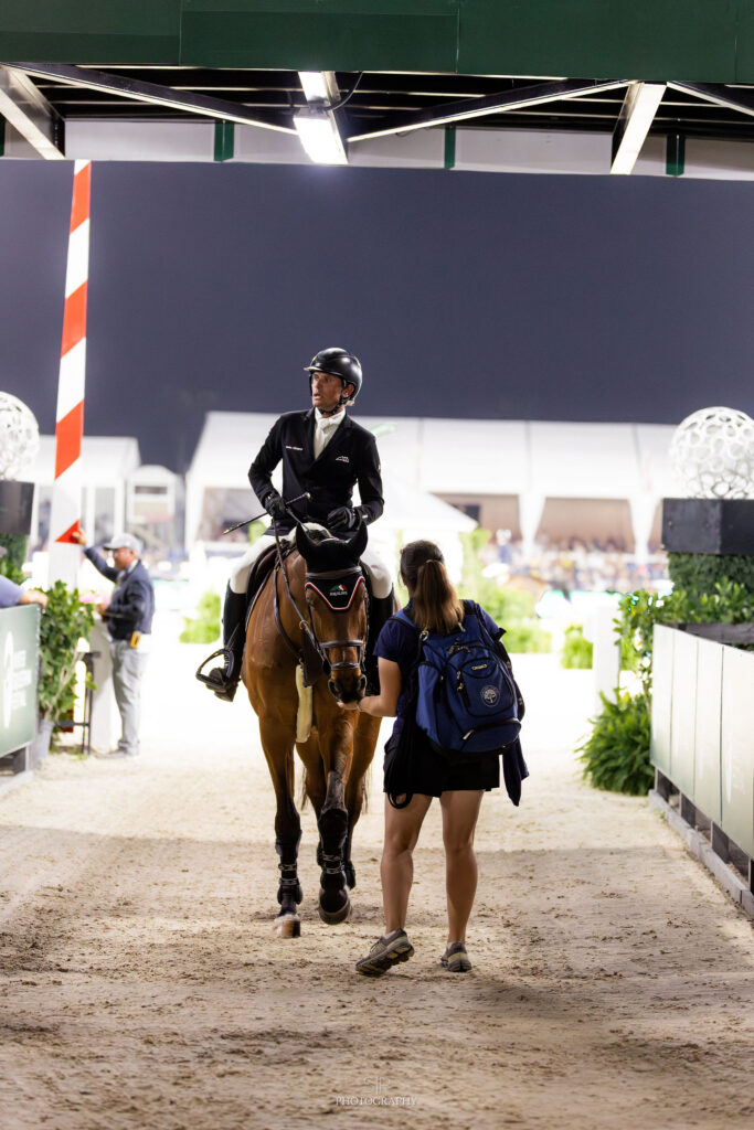 Saturday Night Lights for the $500,000 Bainbridge Companies CSI5* Grand Prix brought a special degree of tension for Darragh Kenny and Eddy Blue’s groom Shauna Murray as they waited their turn. Fourteen horse and rider combinations had tackled the Alan Wade course without a clear. “I was watching at the Stables, because I wasn’t going until the end of the class, and I was like, oh my God. What’s going on here? Is it that difficult?” said Murray.